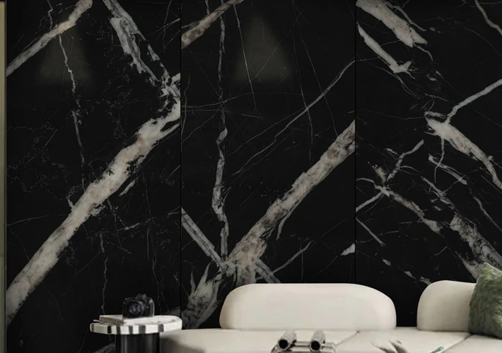 Large format panels create seamless luxury wall effects.