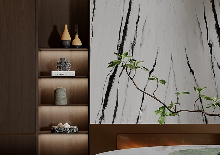 Natural marble delivers visual luxury but comes with drawbacks such as high weight, fragile installation, and expensive logistics. Bamboo charcoal marble wall panels replicate: