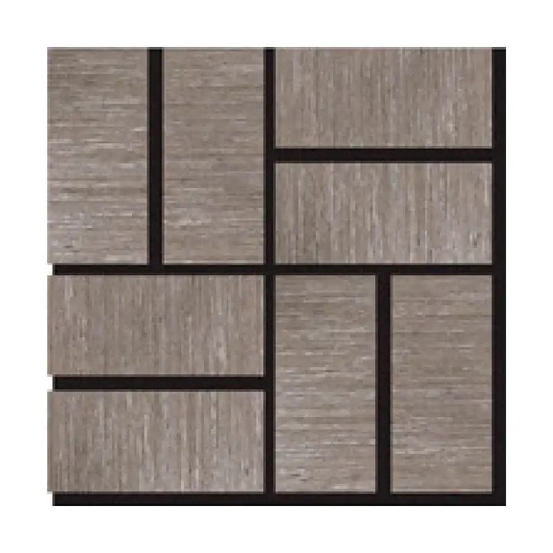 Integrated Acoustic Core: Each square panel incorporates a sound-absorbing substrate (e.g., recycled PET felt, mineral wool, or acoustic foam) behind a perforated or slotted wood face, allowing sound waves to enter and be trapped.