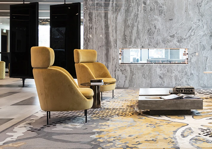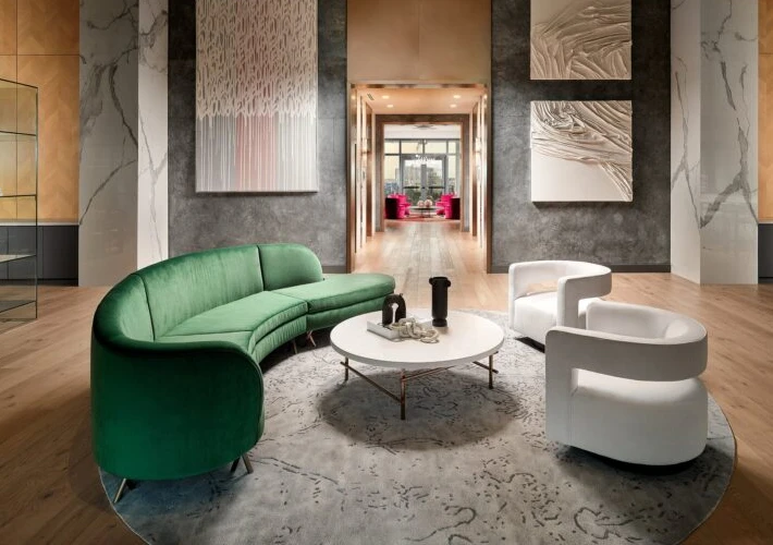 These spaces require high-end design and durable materials to handle frequent use. Many U.S. resorts now choose modular lobby seating et custom reception counters made from PVC marble sheets or metal finishes.
