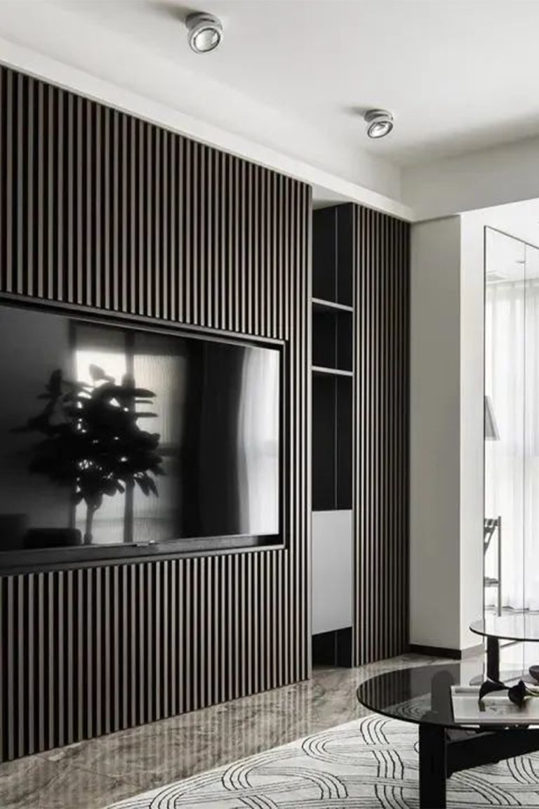Application of 78 in Acoustic Slat Wood Wall Panel in Apartment Projects
