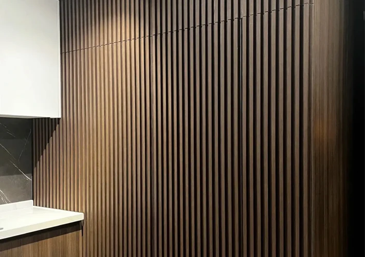 Global design trends are shifting away from cool grey tones. Warm beige, soft brown, and light oak now dominate. PVC wood panels enable full-wall or entire-room “wood drenching,” creating a more immersive and comforting environment.
