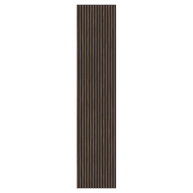 Slat Dark Brown Acoustic Panels offer a sophisticated and linear approach to sound management, featuring vertical or horizontal wood slats in a rich dark brown finish over a sound-absorbing core. This design merges the warm, organic aesthetic of wood with precise acoustic engineering, creating a functional wall treatment that enhances both the auditory and visual environment of a space.